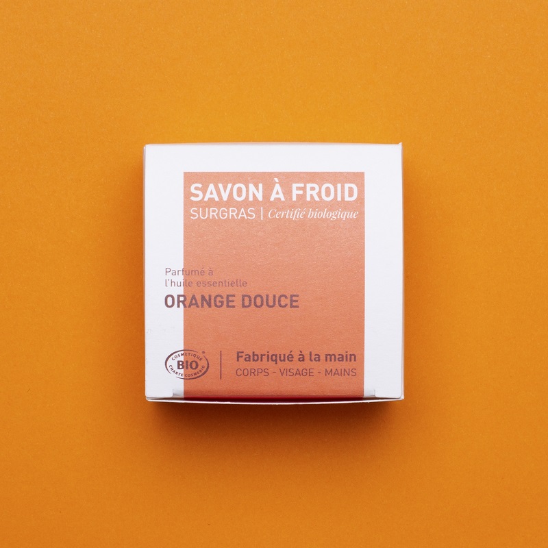 Orange douce est un savon surgras, saponifié à froid, fabriqué avec des ingrédients naturels, sans couleur ajoutée et parfumé avec une seule huile essentielle. L’huile essentielle d’Orange douce possède des vertus apaisantes et décontractantes. Il convient parfaitement aux adultes, et aux grands enfants et est idéal pour se laver le corps, le visage et les mains. Ce savon été fabriqué en collaboration avec la marque parisienne Atelier Populaire fabrique des produits cosmétiques naturels au maximum biologiques. Ils sont faits à la main et certifiés biologiques par Ecocert selon le référentiel COSMOS, ainsi que labellisés Cosmébio et Slow Cosmétique. Les points forts : pour tous types de peau produit certifié BIO savon idéal pour toute la famille, idéal bébés et femmes enceintes fabriqué en France sans huile de palme vegan Ingrédients : Sodium cocoate**, Aqua, Sodium sunflowerseedate**, Glycerin**,Citrus aurantium dulcis (orange) peel oil*, Limonene***, Helianthus annuus (sunflower) seed oil*, Tocopherol, Linalool***